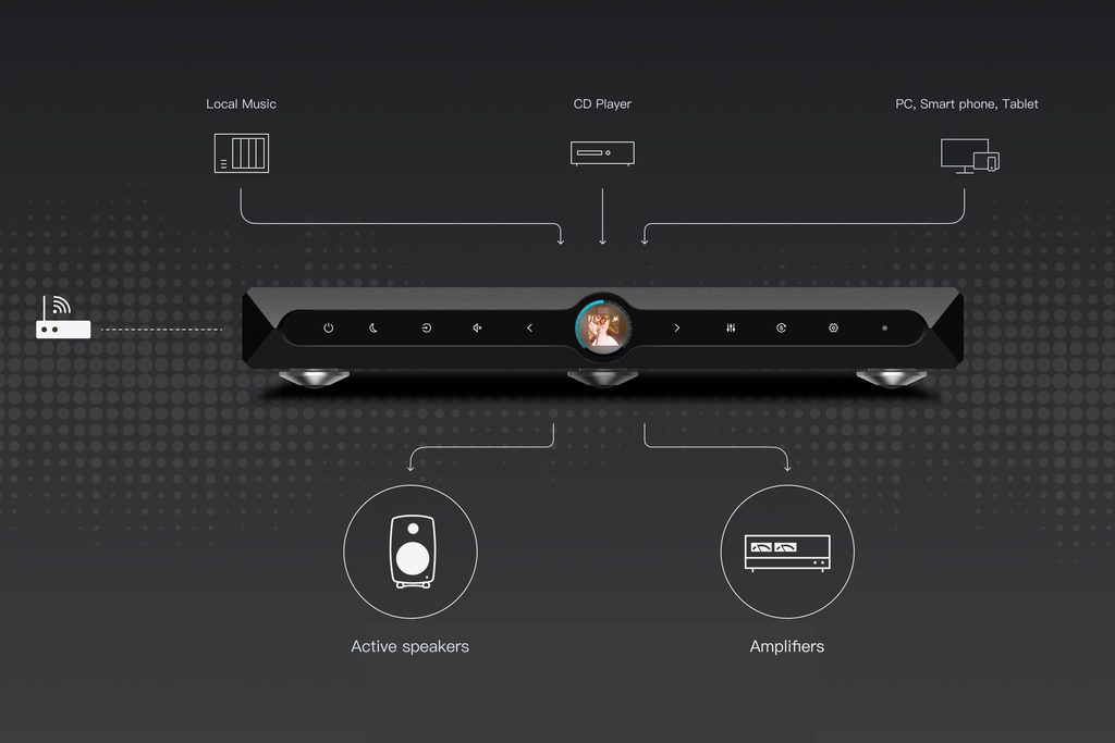 Srdcem přístroje je prověřený HiFi převodník ES9038Pro spojený s 4jádrovým procesorem Cortex-A9 @ 1.2GHz. Díky tomu si poradí i s nejvyšším rozlišením bez zadýchání a především s maximální přesností. Převodník navíc využívá precizní femtosekundové hodiny Crystek CCHD-950 s extrémně přesným časováním signálů. Přístroj navíc umí hodiny také přemostit a pracovat v synchronním režimu.
