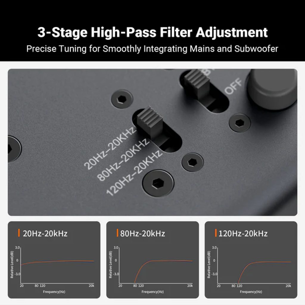 | Výstupy | RCA Cinch, XLR, Subwoofer Out |