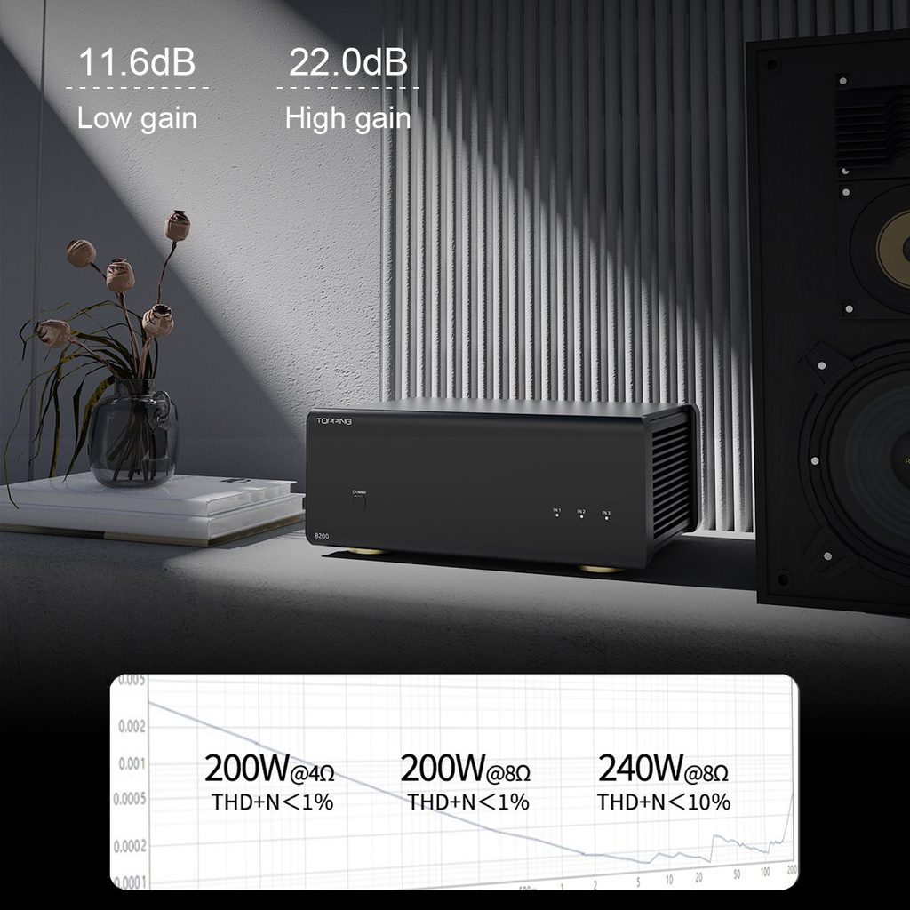Ultra-výkonný zesilovací monoblok s výjimečně kultivovaným výstupem při vysokém výkonu. Až 240 W @ 4 ohmy, 3x vstupy kompatibilní s XLR / TRS, extra nízké zkreslení 0.000075 %, 2 stupně zisku, robustní hliníkové tělo s pasivním chlazením, pracovní režim MONO.