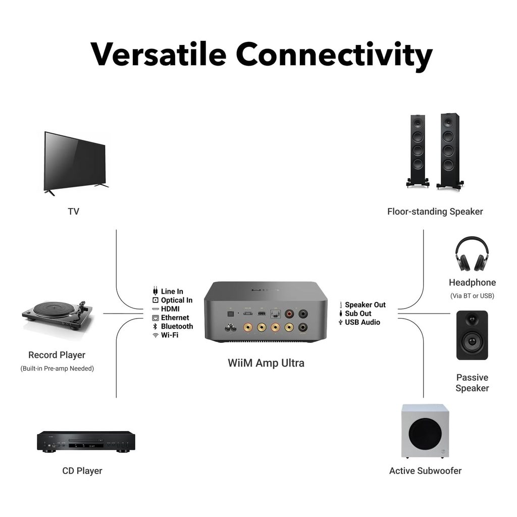 All-in-one streamovací zesilovač s dotykovým displejem a zesilovačem o výkonu 2x 100 W. D/A převodník ESS Sabre podporuje HiRes Audio. WiFi streamování, Bluetooth 5.3, podpora pro AirPlay 2, Chromecast, Spotify Connect, TIDAL Connect, Alexa Cast, Roon. Vstupy RCA / optika / HDMI Arc. Hliníkové tělo.