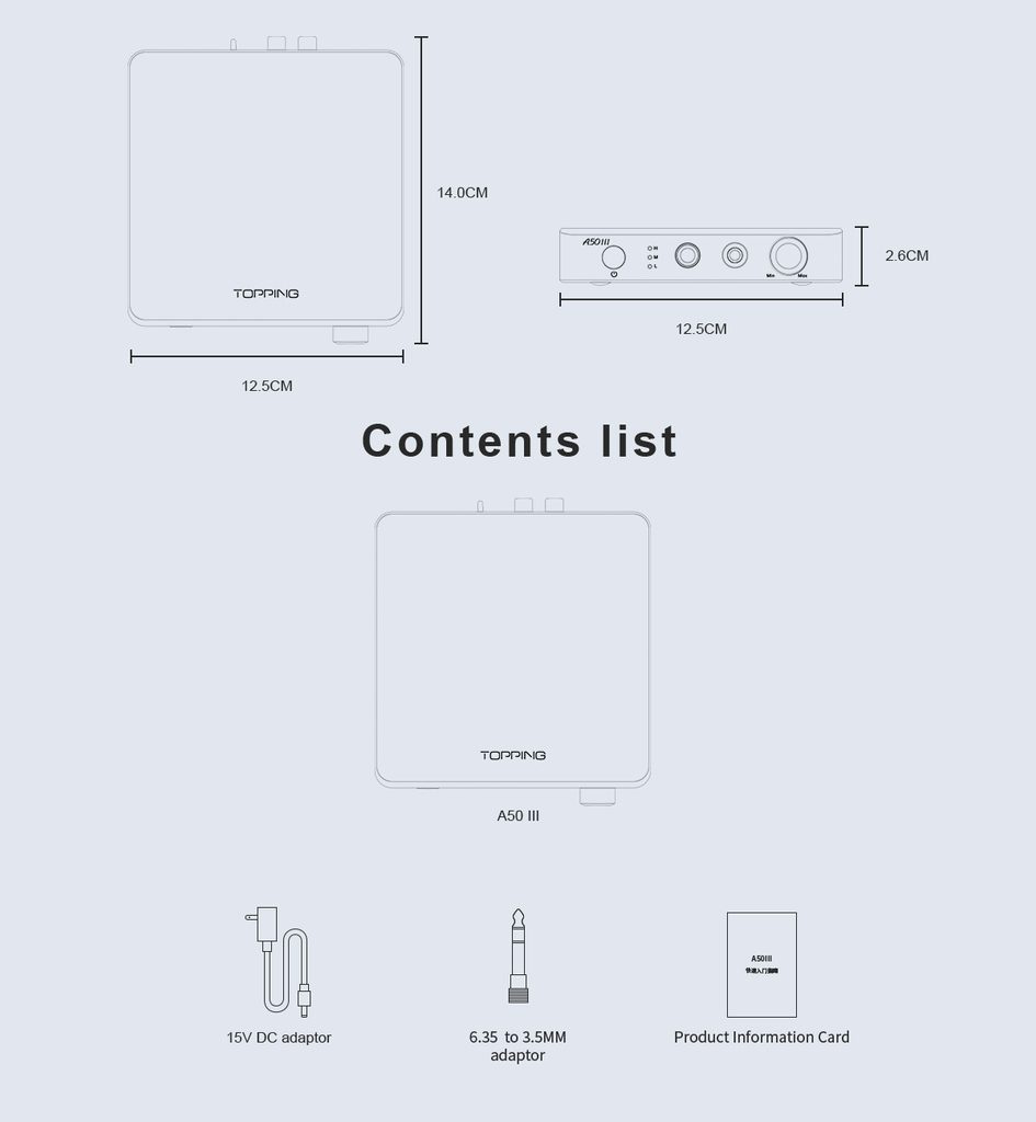 Výkonný sluchátkový zesilovač střední třídy s výstup Jack 6.3 mm a Jack 4.4 mm (symetrický). Maximální výkon 3.5 W na kanál, THD <0.00006 %, výstupní impedance <0.1 ohmu, 3 úrovně zisku. Vstupy RCA a symetrický TRS.