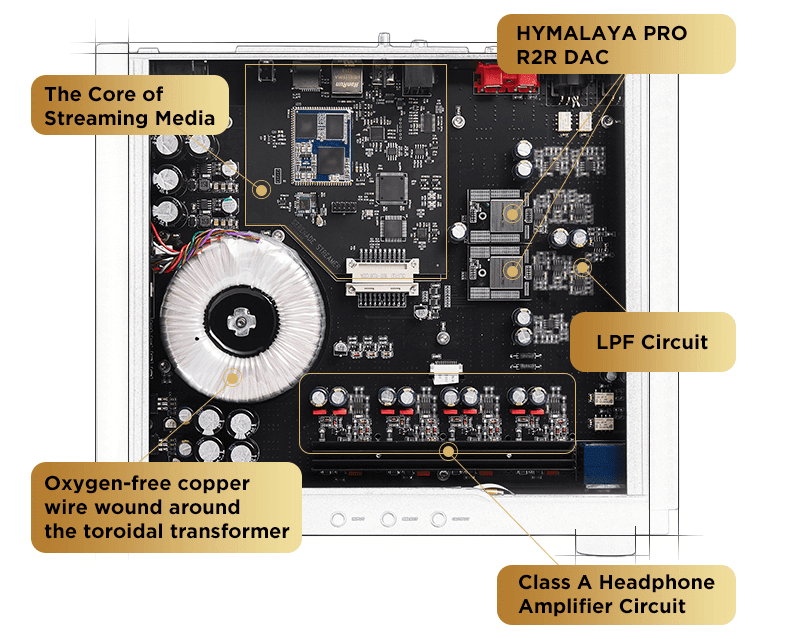 Sluchátkový zesilovač s D/A převodníkem a streamerem. Nový čip Hymalaya Pro R2R Ladder DAC, podporované rozlišení PCM 768 kHz / 32 bit a DSD512. Vstupy: coaxial, ethernet, optika, RCA, USB B. Výstupy: jack 4.4 mm, jack 6.3 mm, RCA, XLR, XLR 4-pin. Bluetooth 5.0, kodeky LDAC, aptX™, aptX™ HD.