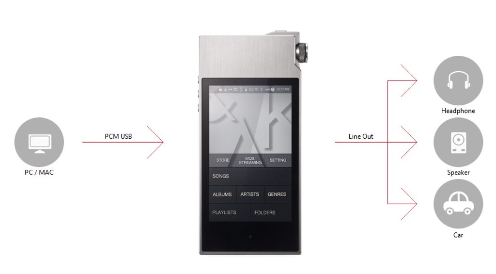 Druhá generace audiofilského přehrávače bezztrátových souborů AK120 znovu posouvá hranice této kategorie a vedle duálního D/A převodníku Cirrus Logic nabídne nově též symetrický výstup, plnou podporu DSD, funkci externího D/A převodníku a konektivitu WiFi.