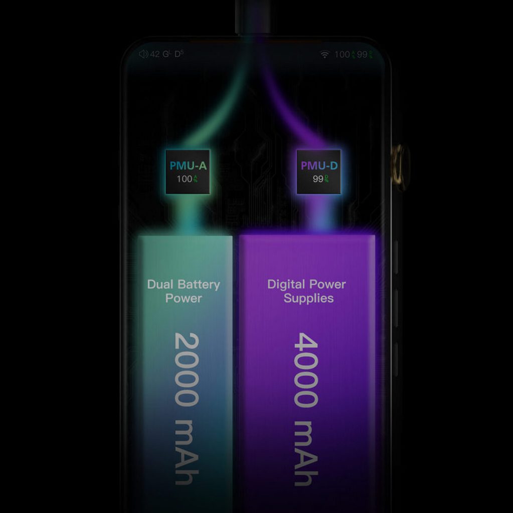 iBasso představuje novou vlajkovou loď, která čerpá z inovací modelu DX220MAX i z celé historie značky. Novinka DX300 využívá samostatné napájení digitální a analogové části, což zajišťuje absolutně přesný přísun energie v každé situaci. Napájení mají na starosti 2 baterie (4000 + 2000 mAh) přičemž jejich nabíjení nově probíhá skrze jediný společný USB-C konektor.