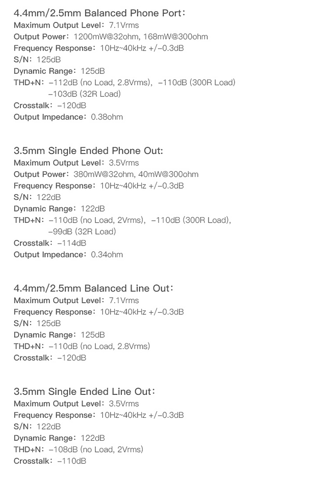 HighEnd osobní audio přehrávač s dvojicí D/A převodníků ROHM MUS-IC. Samostatné napájení pro analogovou a digitální část, výdrž cca 10 hodin, výkon až 1200 mW @ 32 ohmů, výstupy Jack 2.5 / 3.5 / 4.4 mm a také Coax + USB OTG.