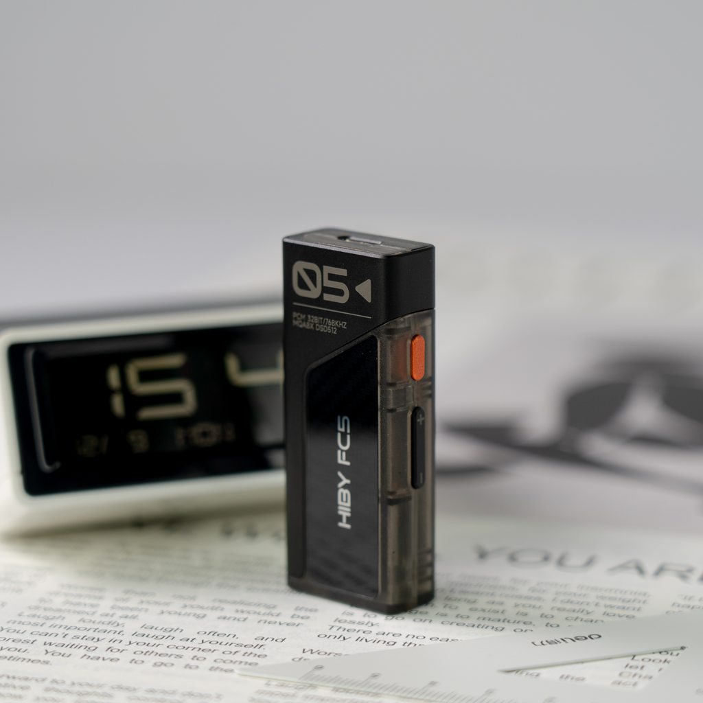 Miniaturní D/A převodník a sluchátkový zesilovač se vstupem USB-C a dvěma výstupy pro sluchátka.