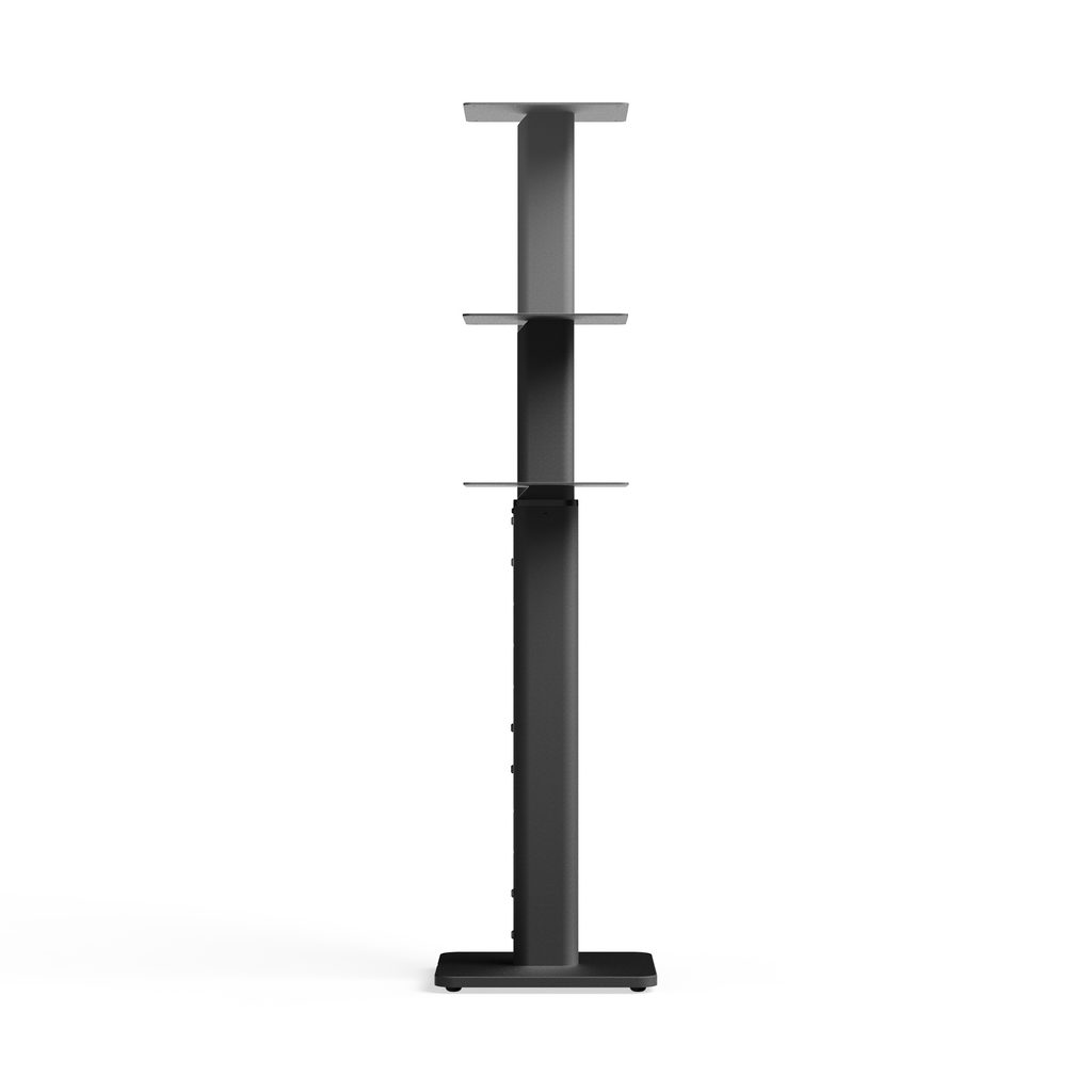 Celokovová konstrukce, od základny až po horní desku, poskytuje spolehlivou oporu pro cennou audio techniku. Použití dvojitého šroubového uzamykacího systému zajišťuje pevné spojení teleskopických sloupků, minimalizuje jejich vzájemné pohyby a redukuje vibrace, čímž udržuje zvuk maximálně věrný originálu.