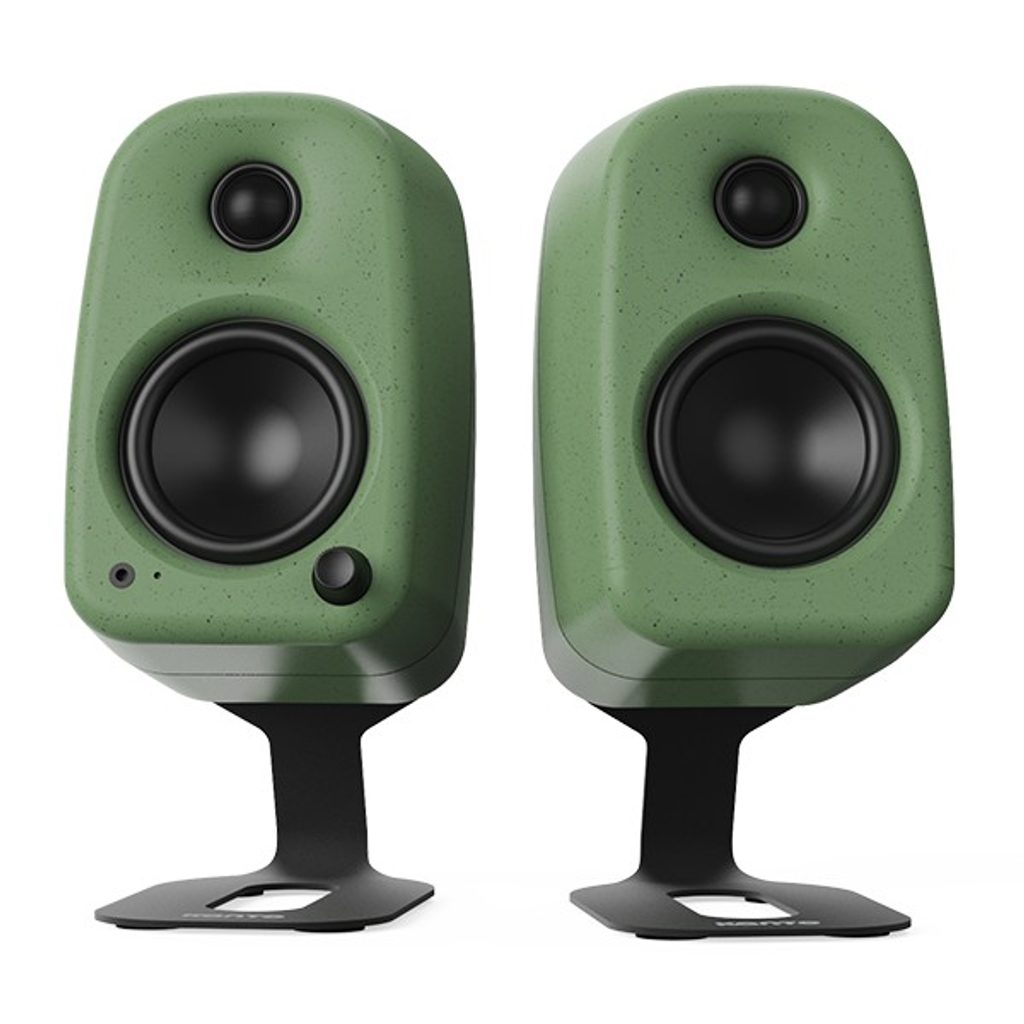 Stojánky jsou vyrobeny z masivní oceli s odolným práškovým lakováním, což zajišťuje potřebnou tuhost pro stabilní usazení techniky. Pro zamezení přenosu nežádoucích vibrací mezi reproduktorem a stolem jsou stojany osazeny integrovanými silikonovými podložkami. Ty fungují jako mechanický izolant a zároveň chrání povrch nábytku i samotných reproduktorů před poškrábáním.