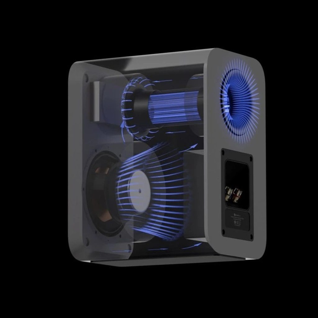 Puristicky řešené pasivní dvoupásmové reproduktory se zadním bassreflexem.