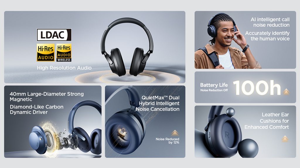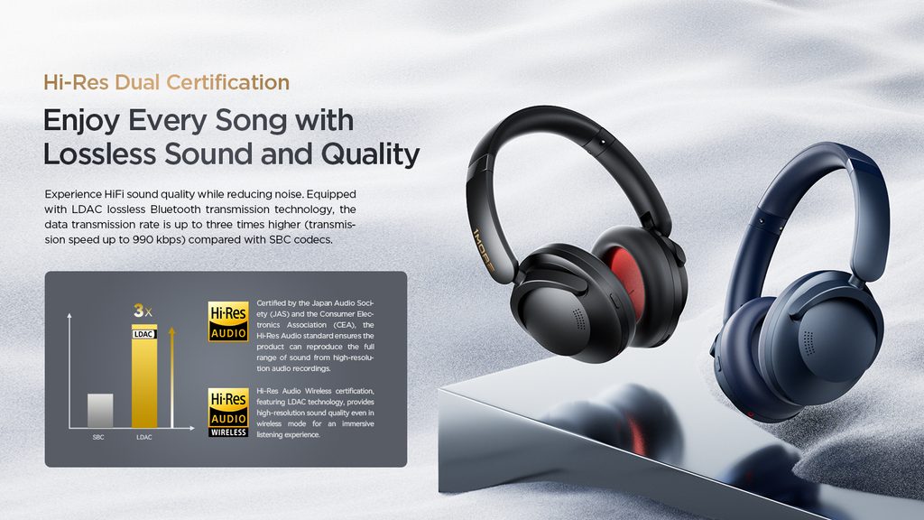Bezdrátová sluchátka s hybridním potlačením hluku ANC a podporou HiRes Audio Wireless. Přenos Bluetooth 5.4 s bezztrátovým kodekem LDAC. Výdrž až 65 h s ANC, dynamické měniče 40 mm laděné držitelem Grammy, 12 přednastavených režimů Ekvalizéru, možnost poslechu také přes kabel.