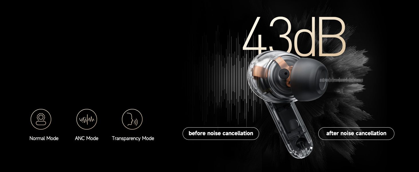 Bezdrátová in-ear sluchátka s hybridní ANC technologií. 6 mikrofonů s funkcí potlačení šumu v pozadí pro kvalitnější hovory. Přenos Bluetooth 5.3 s kodeky AAC, LDAC a SBC. Celková výdrž až 52 hodin při použití dobíjecího pouzdra, dynamické měniče o průměru 12 mm, nabíjení přes USB-C, game mode s nízkou latencí.