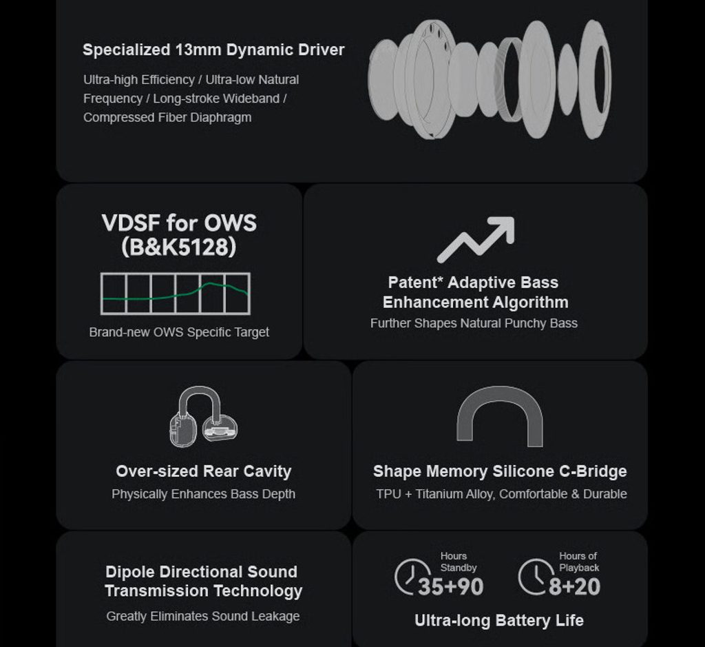 True Wireless sluchátka se speciální OWS konstrukcí bez náušníků a s přichycením za ucho