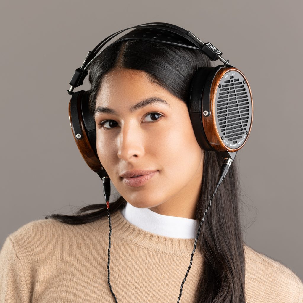 Tradiční sluchátková reference s magnetoplanárními měniči. Ultratenká membrána (106 mm) v homogenním magnetickém poli s prvky Fazor. Rám mušlí je vyroben z luxusně lakovaného dřeva Rosewood.