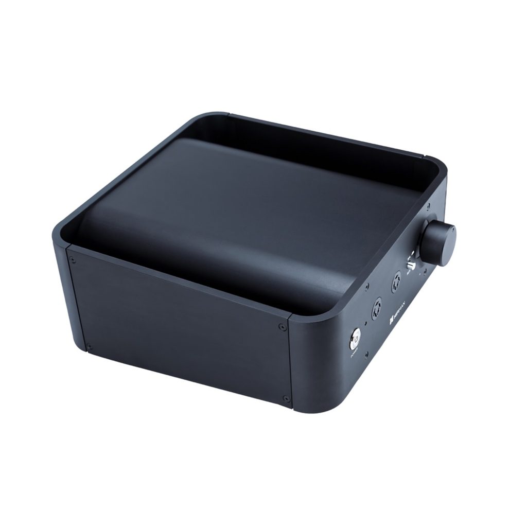 Kombinace prémiových elektrostatických sluchátek a na míru navrženého zesilovače, otevřená sluchátka s membránou 0.001 mm, frekvenční odezva 7 Hz – 90 kHz, lehká hliníková konstrukce sluchátek s hmotností pouhých 365 g, oválný tvar náušníků maximalizuje plochu membrány.