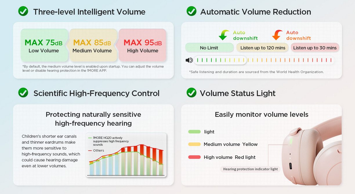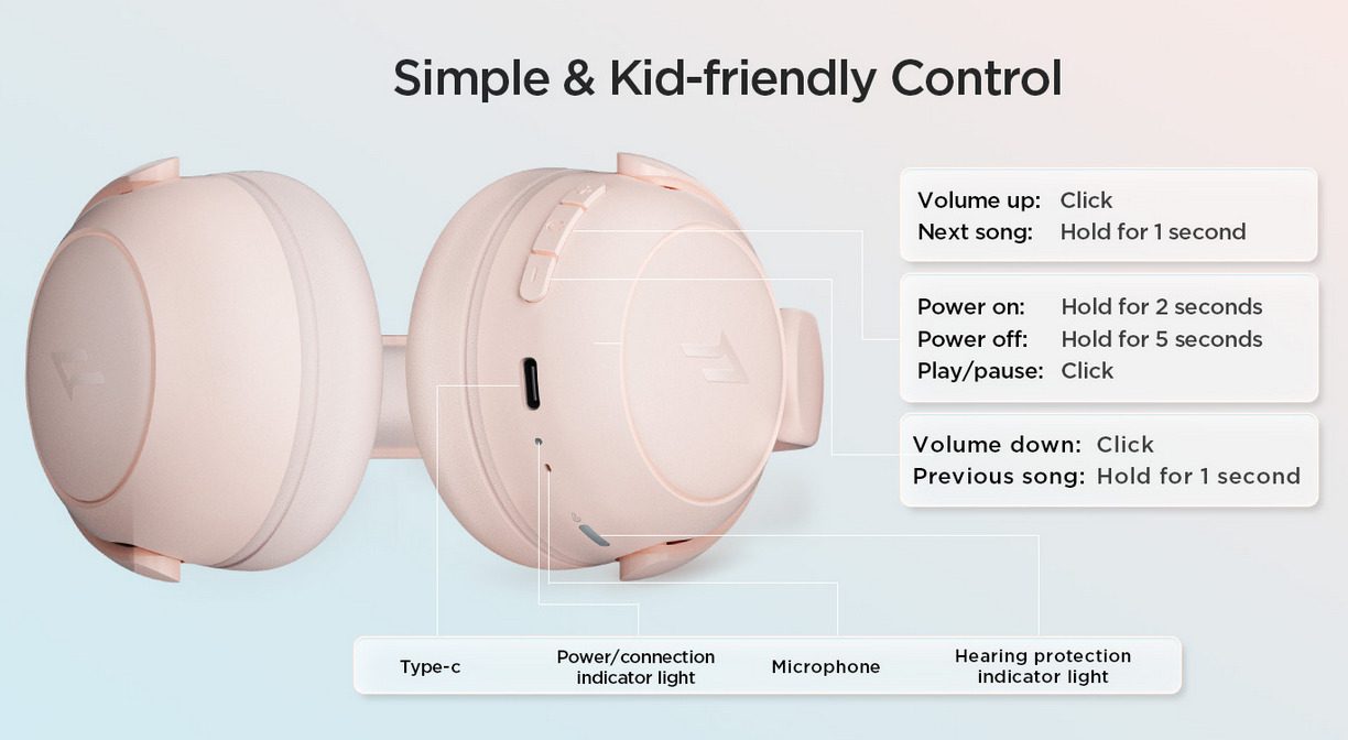 Dětská uzavřená sluchátka s limitací hlasitosti pro bezpečný poslech v každém věku.