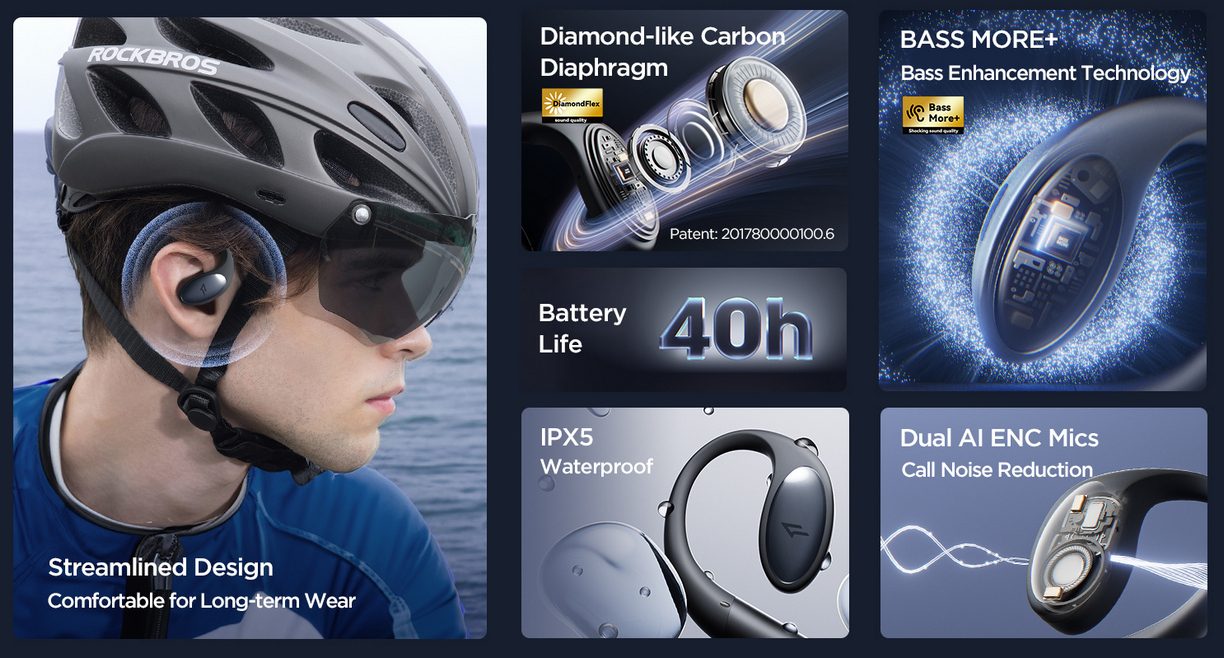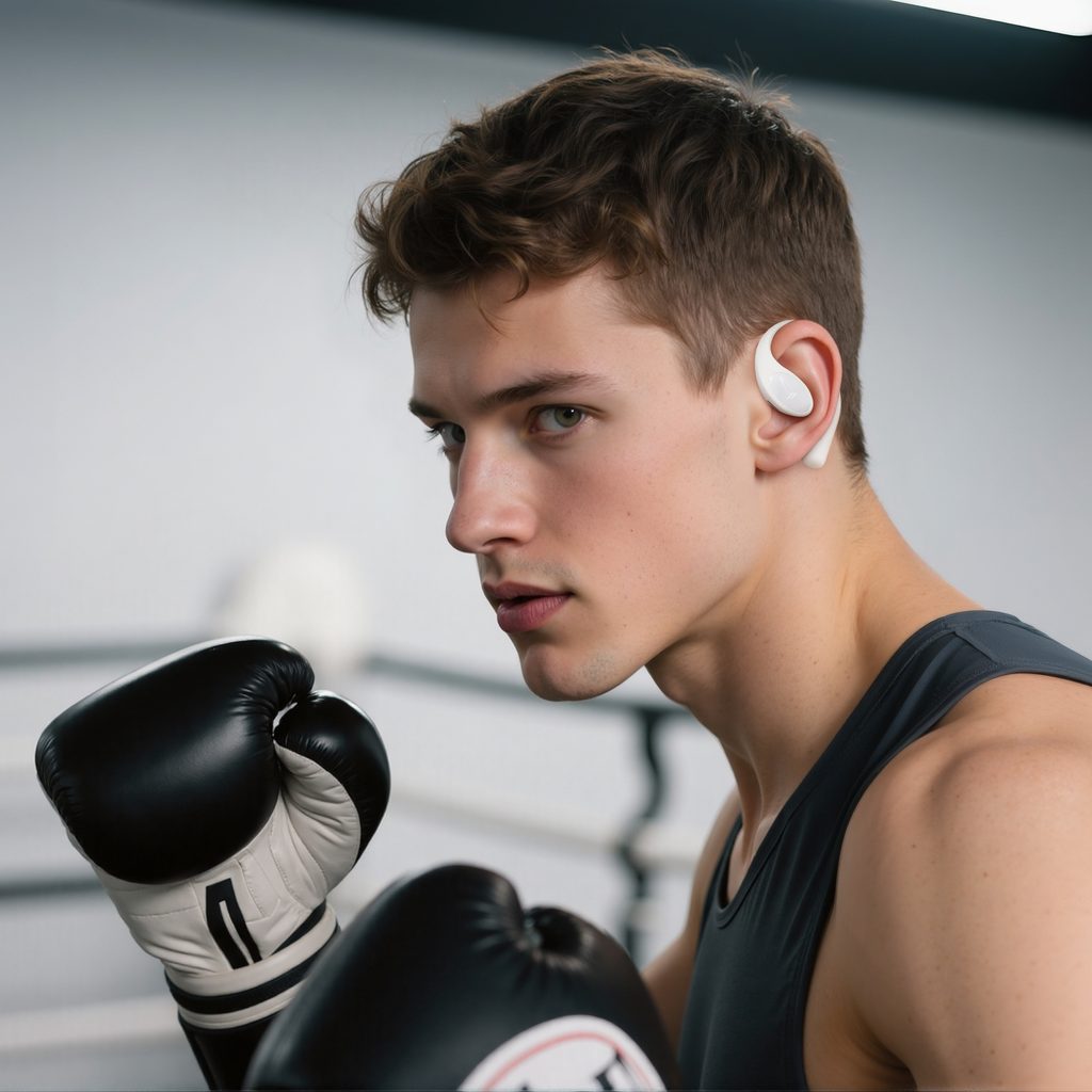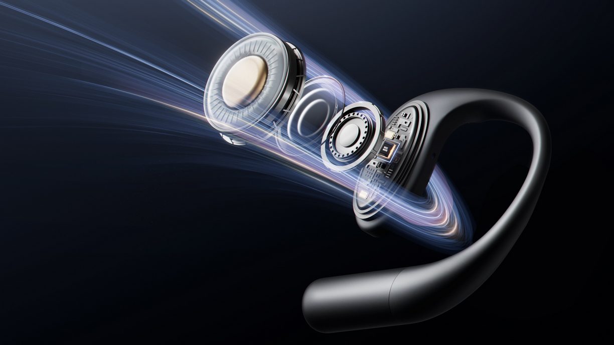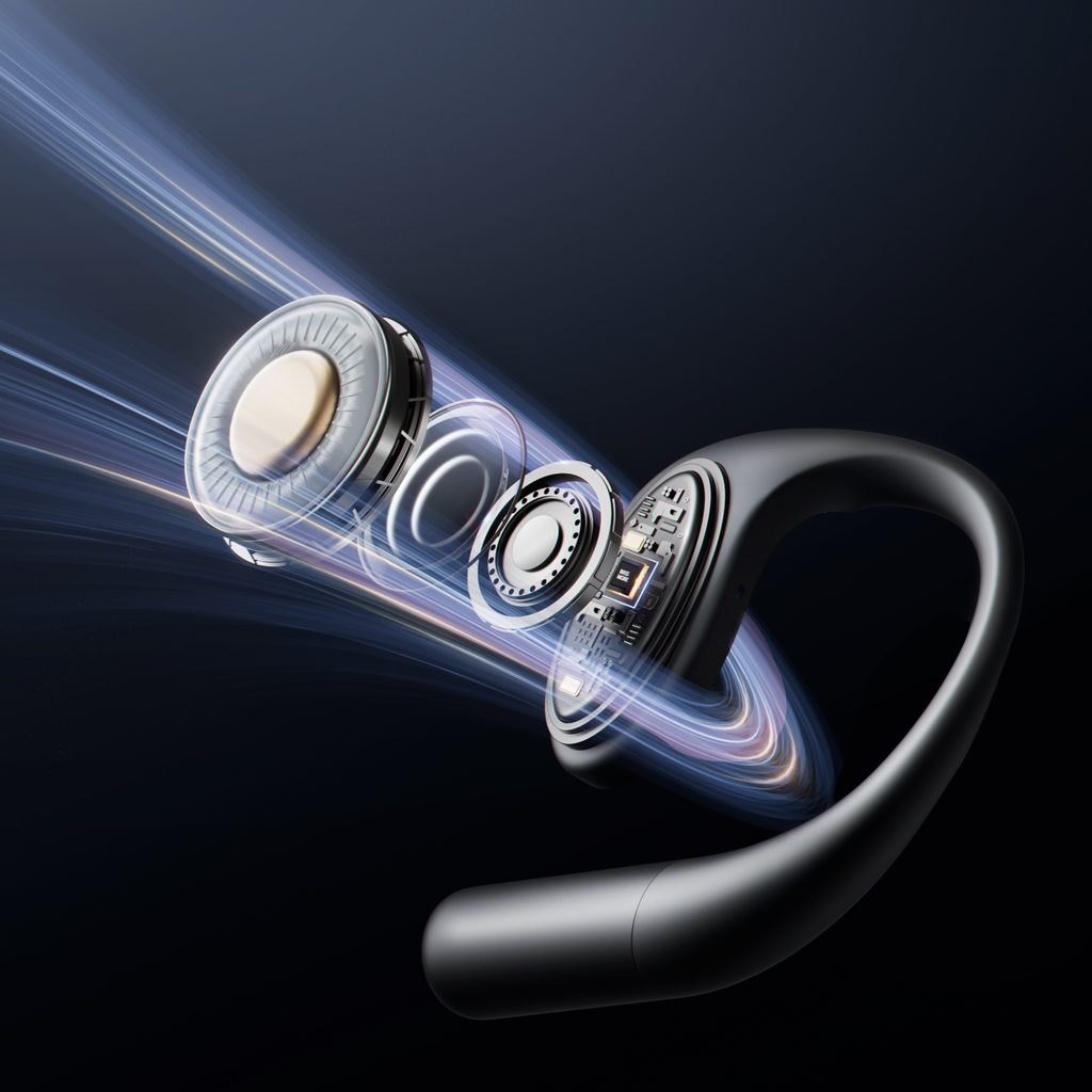 Sportovní OpenEar sluchátka se silikonovými oušky a odolností dle normy IPX5.
