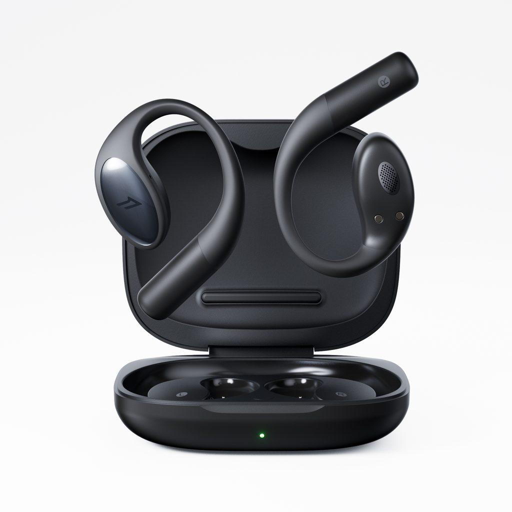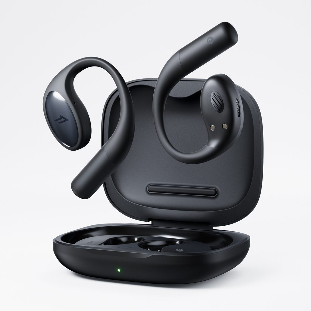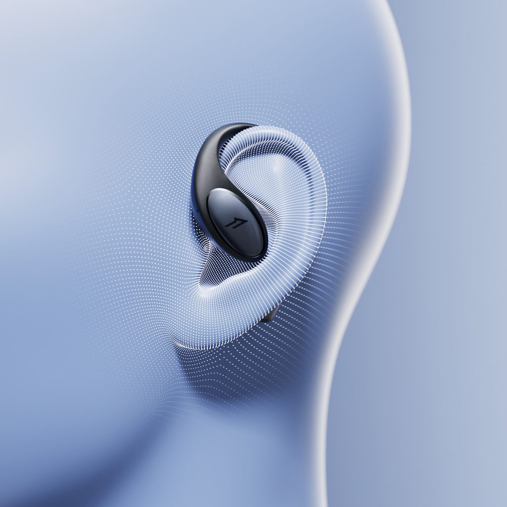 Sportovní OpenEar sluchátka se silikonovými oušky a odolností dle normy IPX5.