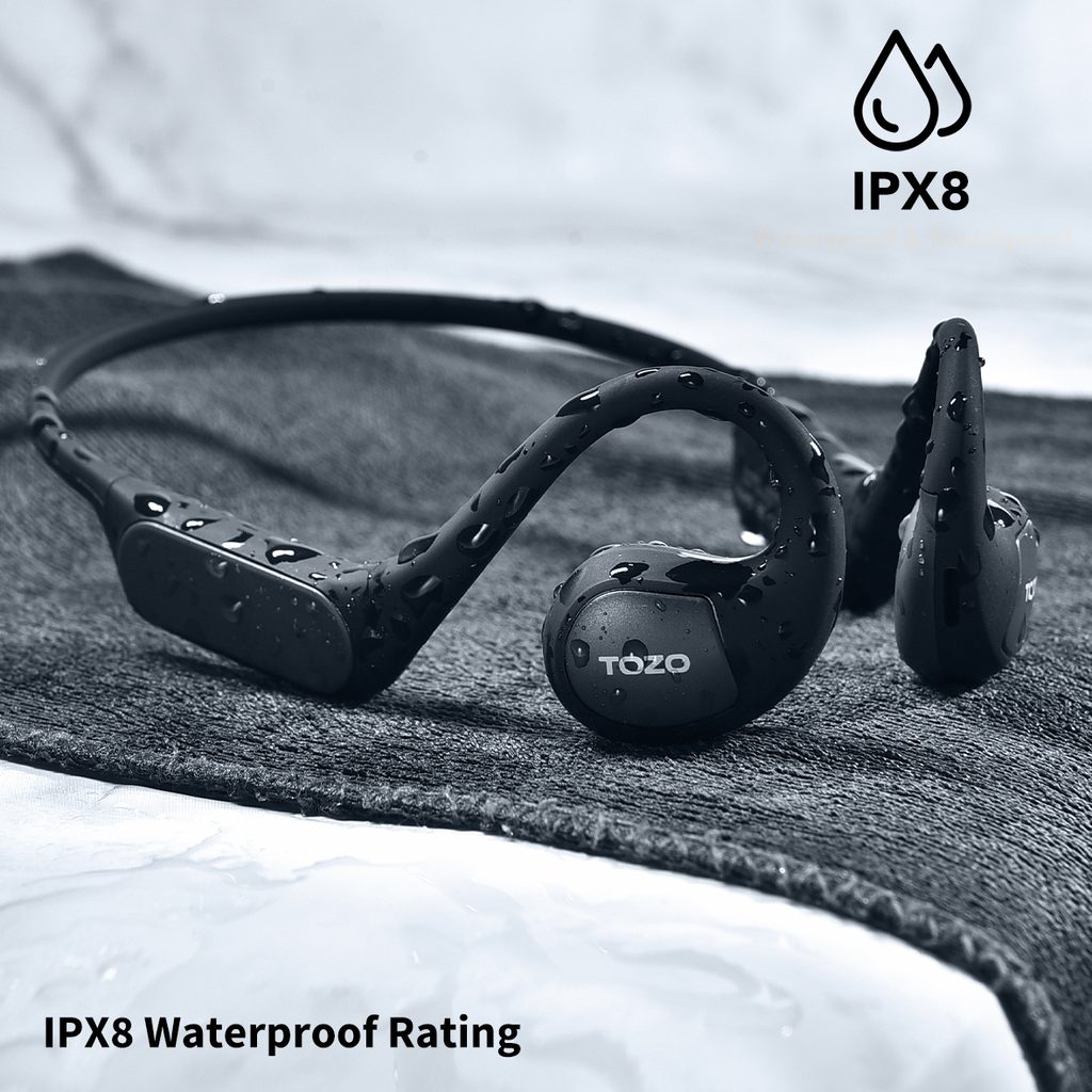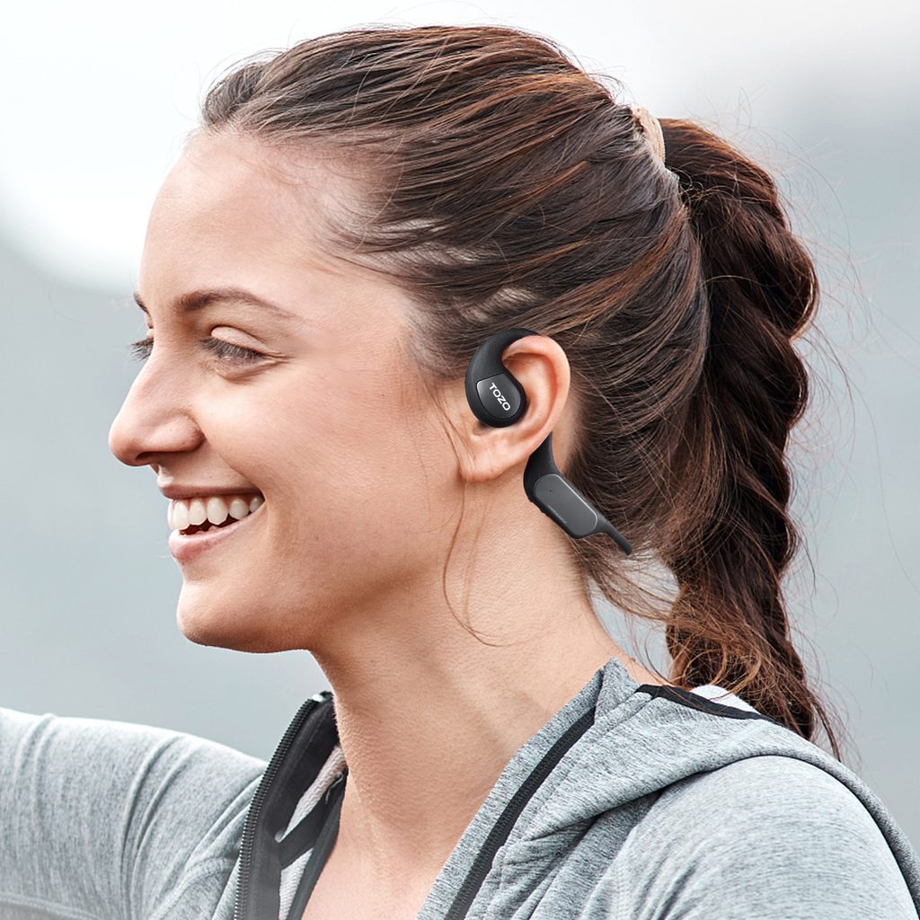 Sportovní bezdrátová sluchátka typu OpenEar - ideální pro běžce, cyklisty a fitness nadšence.