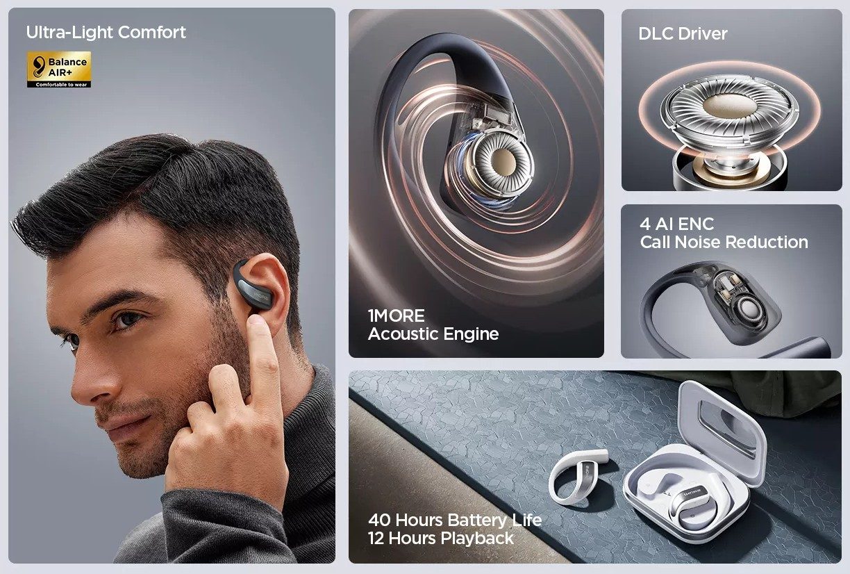 Kvalitní OpenEar sluchátka se špičkovými mikrofony pro časté telefonování.