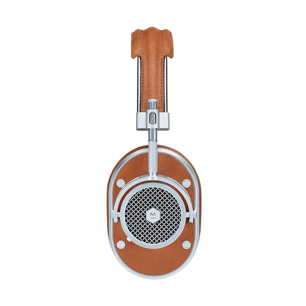 Stylová uzavřená sluchátka s odpojitelným kabelem. Kombinace kovu a pravé kůže. Náušníky z jehněčí kůže obklopují celé ucho.