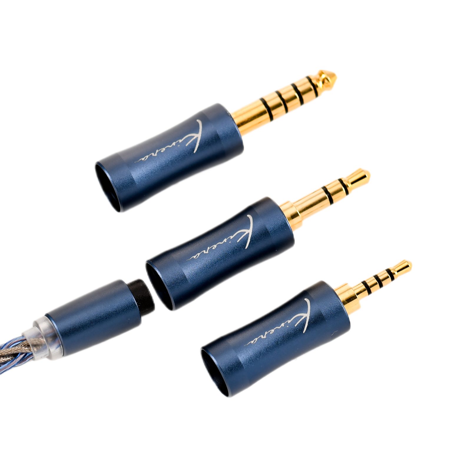 Vylepšený modulární stříbřený splétaný kabel, délka 122 cm ± 2 cm, zaměnitelné redukce 2,5 mm, 3,5mm a 4,4 mm. Napojení na sluchátka mmcx konektor.