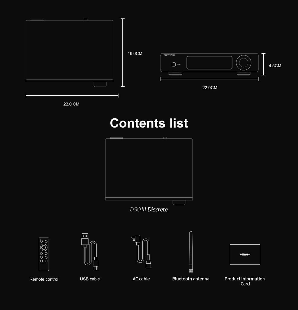 | Vstupy | USB Type B, Optika, AES, Coaxial, Bluetooth, HDMI I2S |