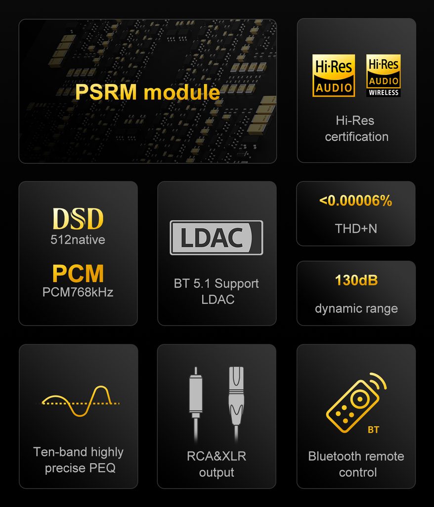 | Vzorkování | 768 kHz / 32 bit, DSD512 |