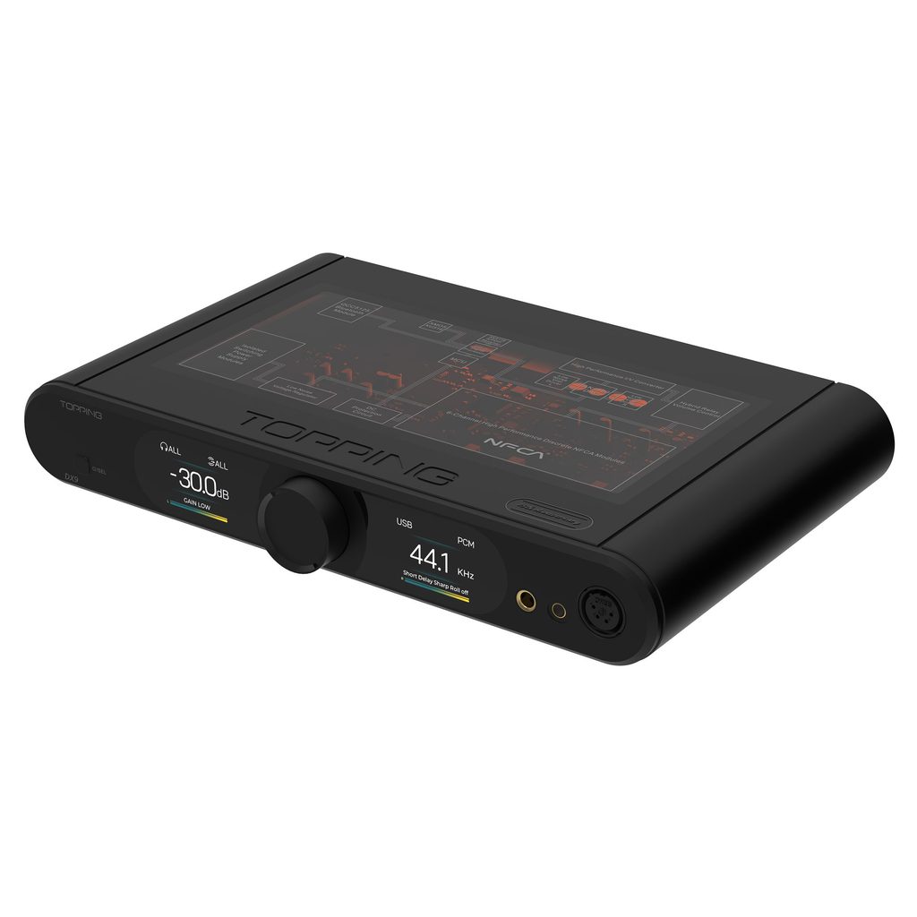 Vrcholná DAC/AMP kombinace značky Topping. Extrémně ceněný DAC AK4499EQ, 6kanálový zesilovací modul NFCA s výkonem až 7 W symetricky. Kompletní symetrické vstupy i výstupy, sluchátkový XLR / 4.4 / 6.3, dálkové ovládání.