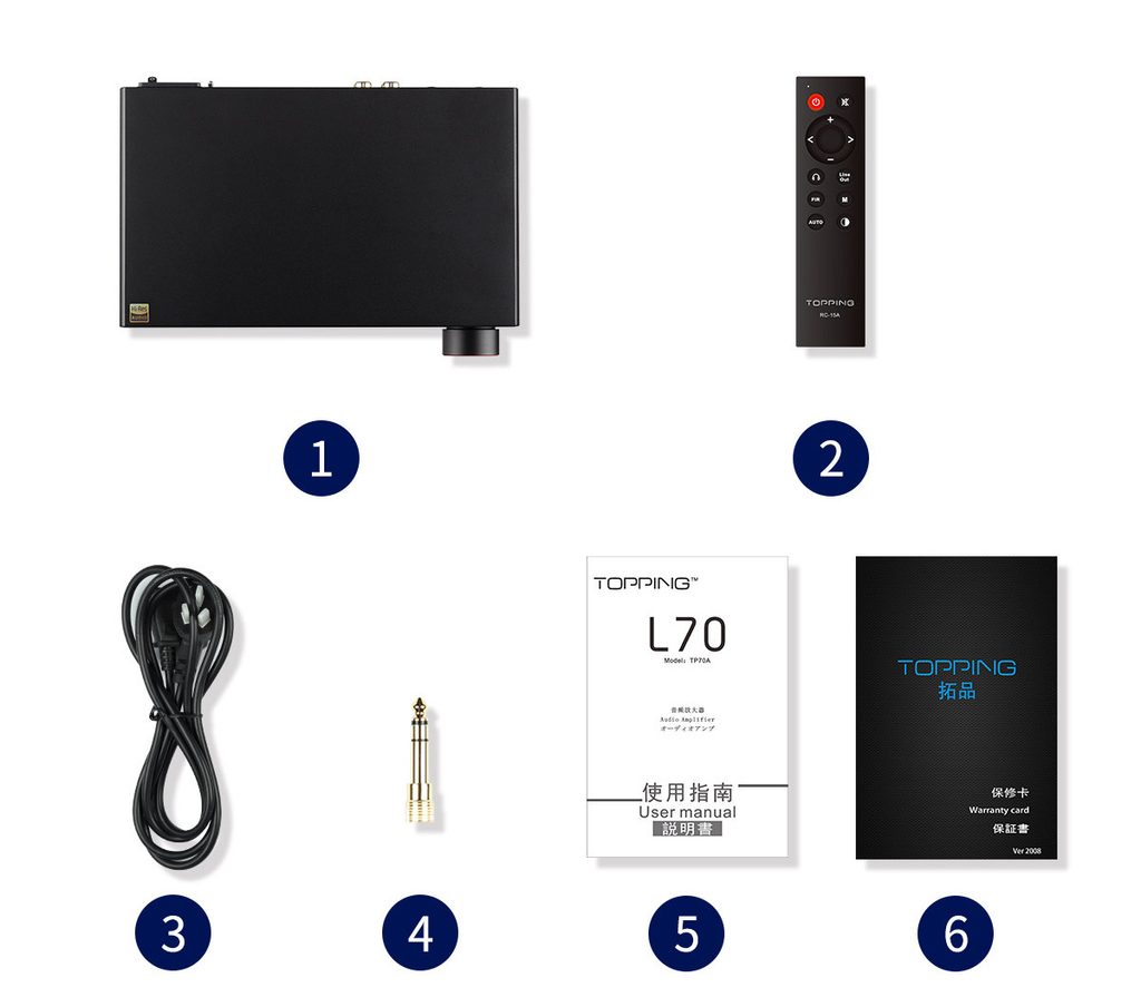 | Příslušenství v balení | L70, napájecí kabel, dálkové ovládání, redukce Jack 6.3 mm |